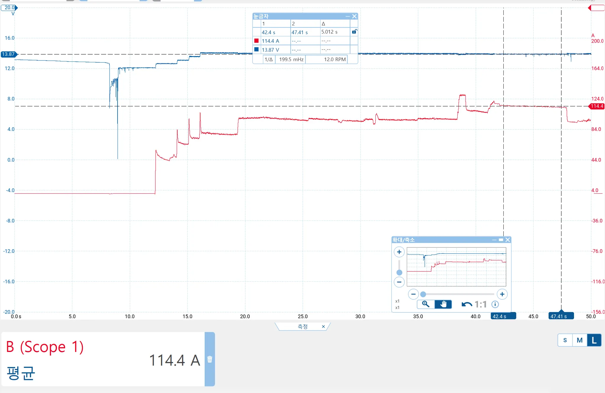 준비를 한 후 발전기 전압과 전류를 동시에 측정해 봅니다.