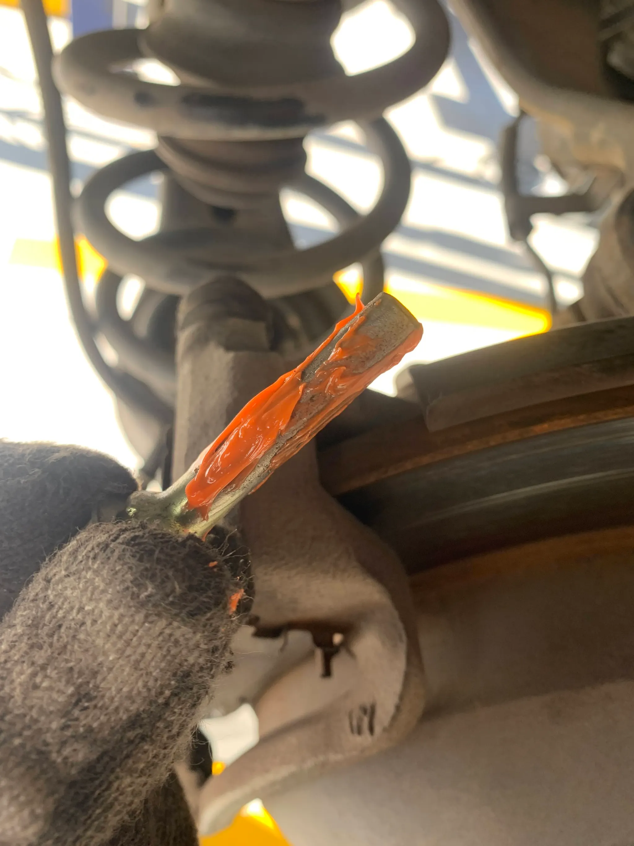 위사진은 브레이크 캘리퍼 슬라이딩 로드 부분인데,, 좌, 우 측 모두 오랜 사용 기간으로 인해 녹으로 고착이 일어났네요.