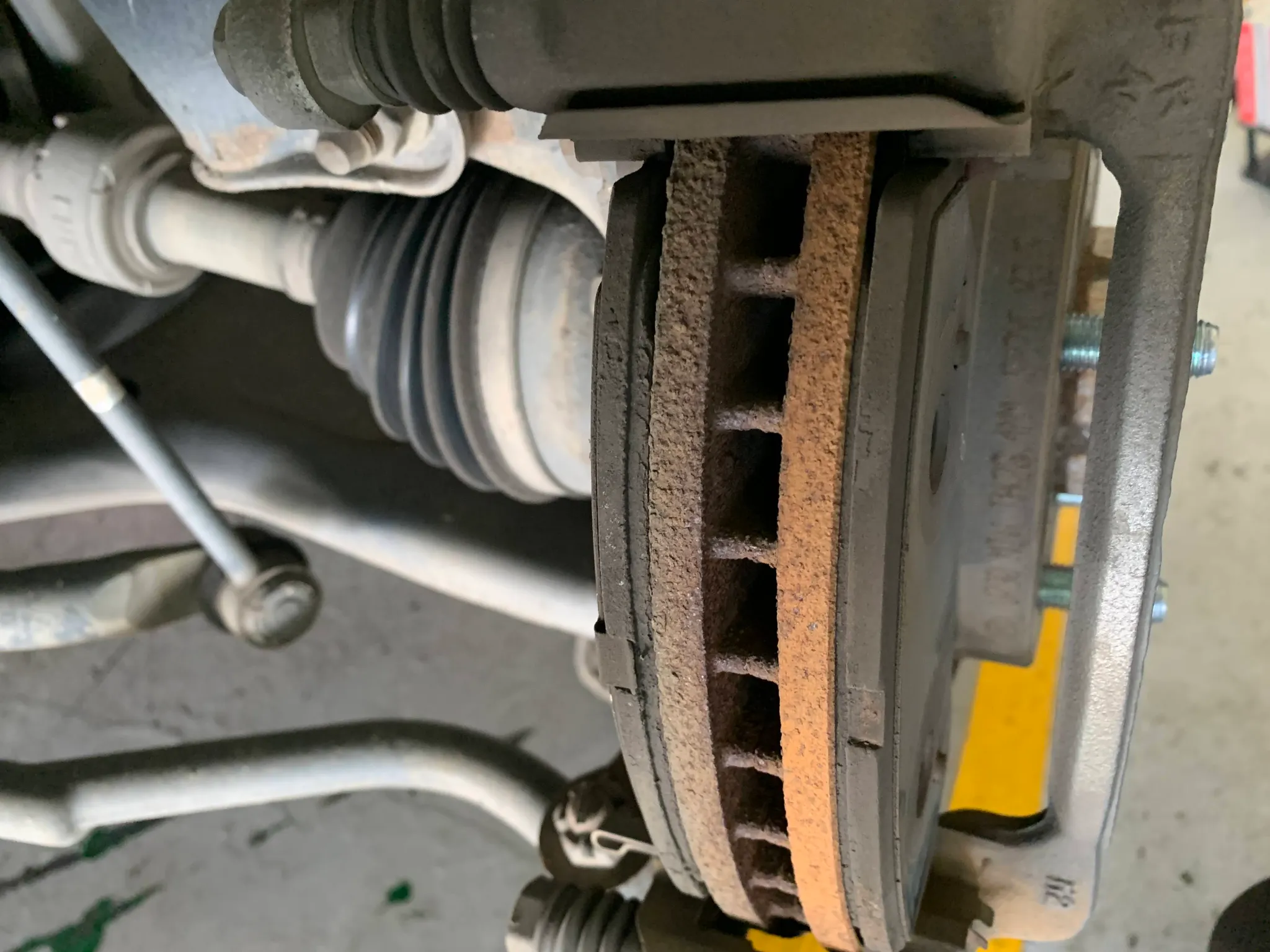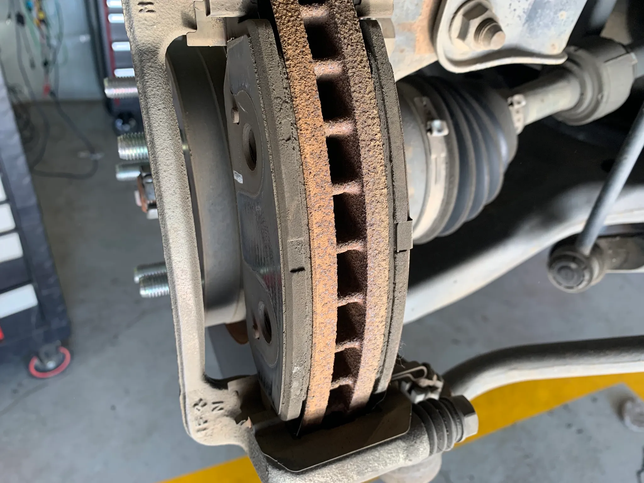 이런 상태로 조립이 된다면, 브레이크 패드의 마모마 훨씰 빨라지거나, 혹은 한 쪽만 고착이 되어, 브레이크 패달이 내려가는 스펀지 현상도 발생하기도 합니다.